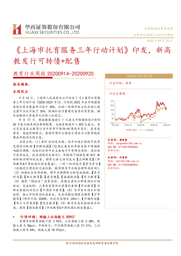 【华西证券】【20200920】20200920-华西证券-教育行业周报:《上海市托育服务三年行动计划》印发,新高教发行可转债+配售-18页