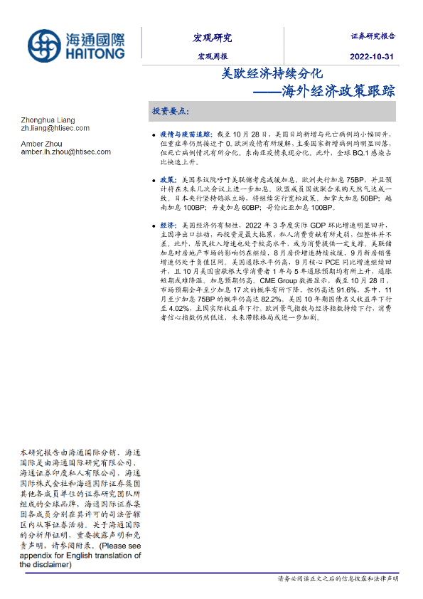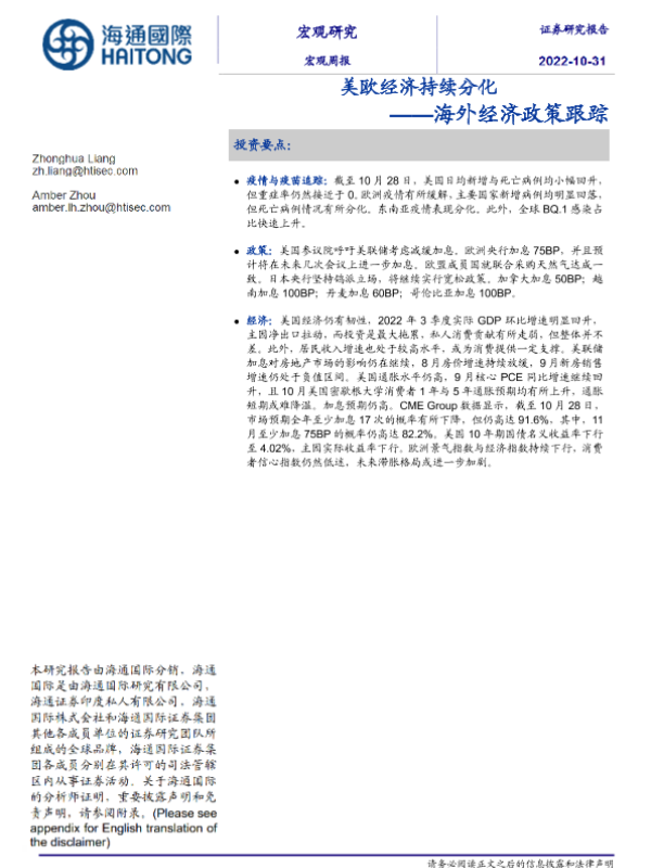 【海通国际】【20221031】海外经济政策跟踪:美欧经济持续分化-20页