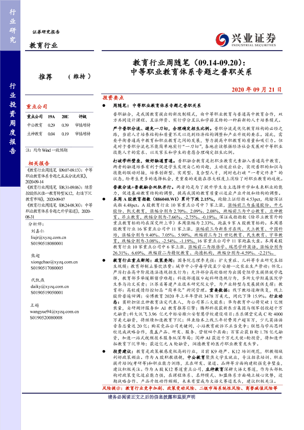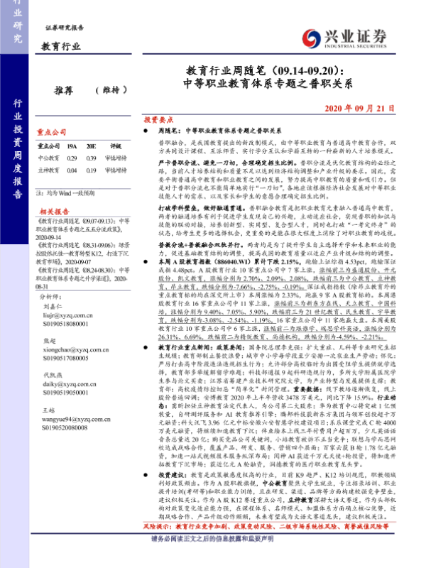 【兴业证券】【20200921】教育行业周随笔(09.14-09.20):中等职业教育体系专题之普职关系-21页