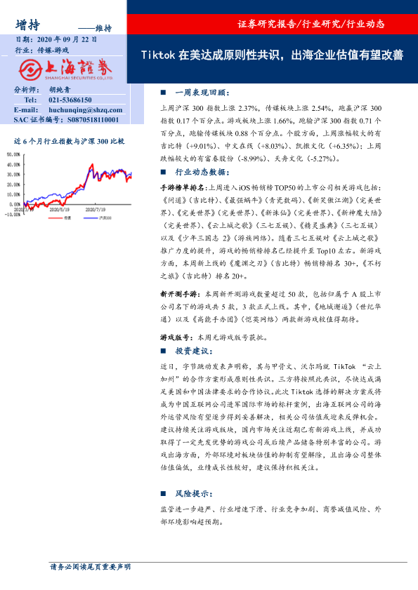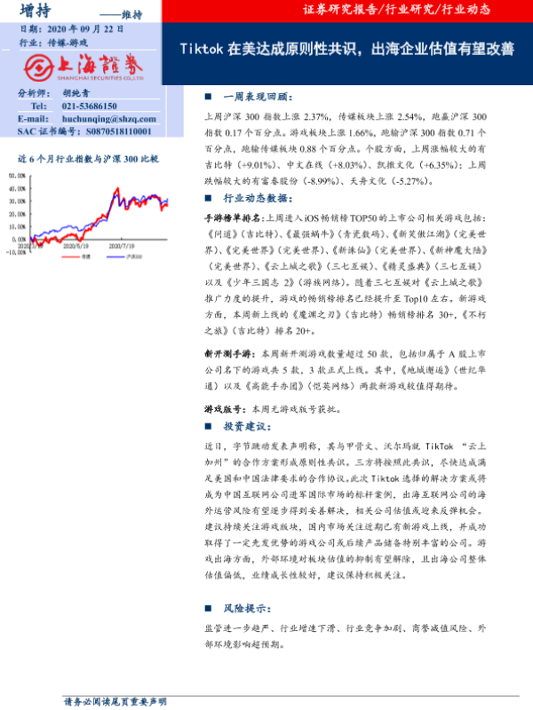【上海证券】【20200922】20200922-上海证券-传媒-游戏:Tiktok在美达成原则性共识,出海企业估值有望改善-9页