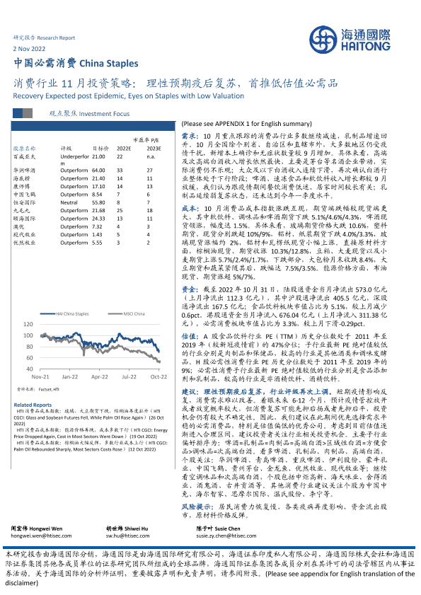 【海通国际】【20221102】消费行业11月投资策略:理性预期疫后复苏,首推低估值必需品-40页