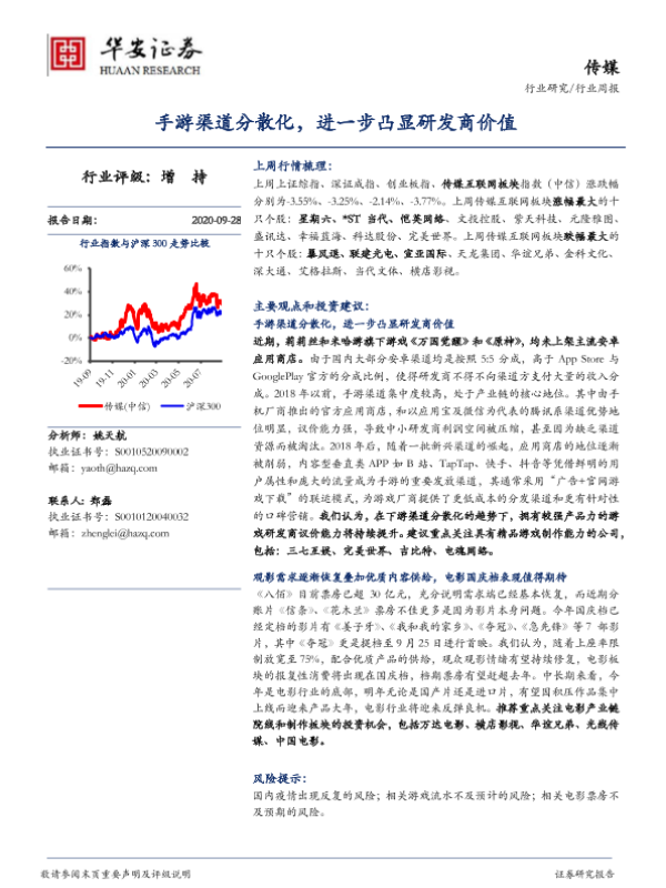 【华安证券】【20200928】20200928-华安证券-传媒行业周报:手游渠道分散化,进一步凸显研发商价值-15页
