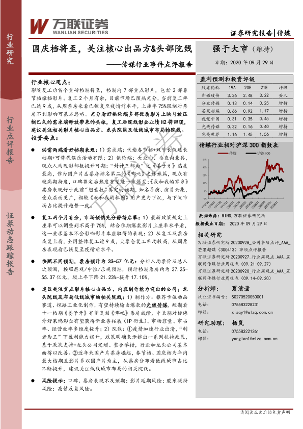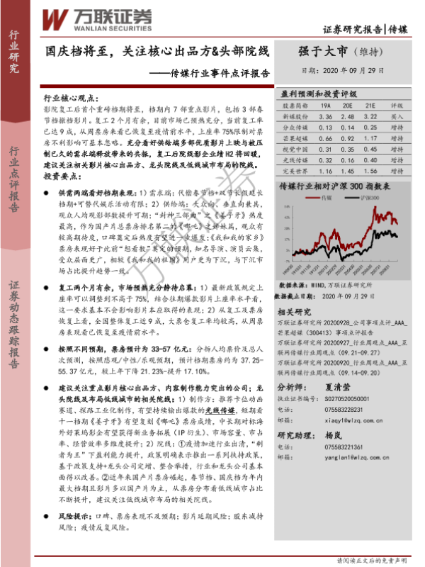 【万联证券】【20200929】国庆档将至,关注核心出品方&头部院线-12页