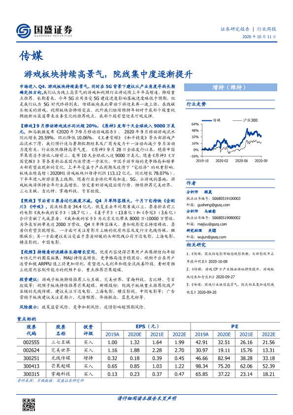 【国盛证券】【20201011】20201011-国盛证券-传媒行业周报:游戏板块持续高景气,院线集中度逐渐提升-16页