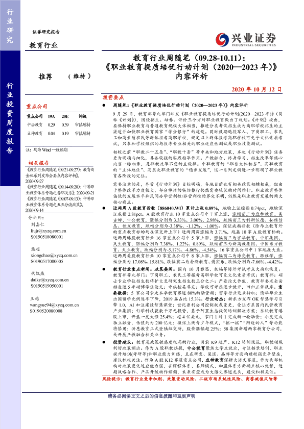 【兴业证券】【20201012】教育行业周随笔(09.28-10.11):《职业教育提质培优行动计划(2020—2023年)》内容评析-18页