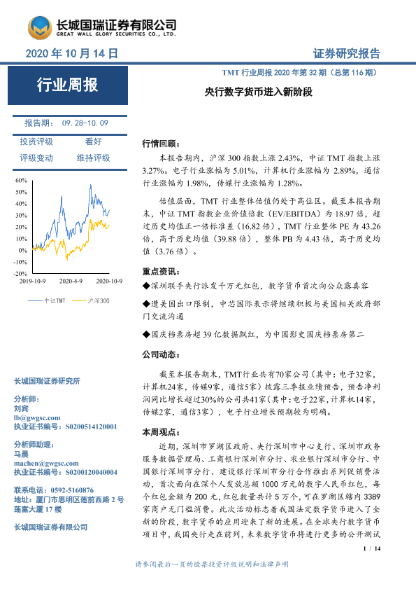 【长城国瑞证券】【20201014】TMT行业周报2020年第32期(总第116期):央行数字货币进入新阶段-14页
