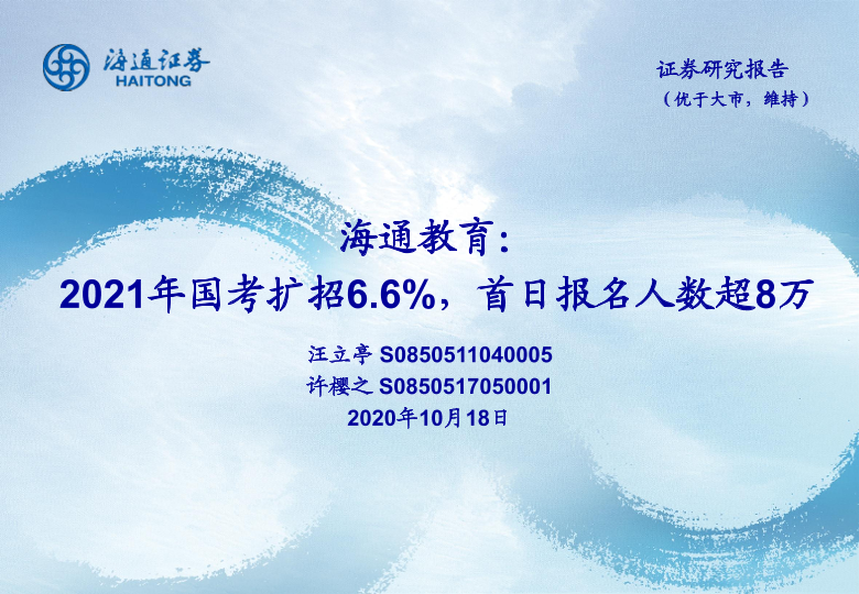 【海通证券】【20201018】海通教育:2021年国考扩招6.6%,首日报名人数超8万-14页