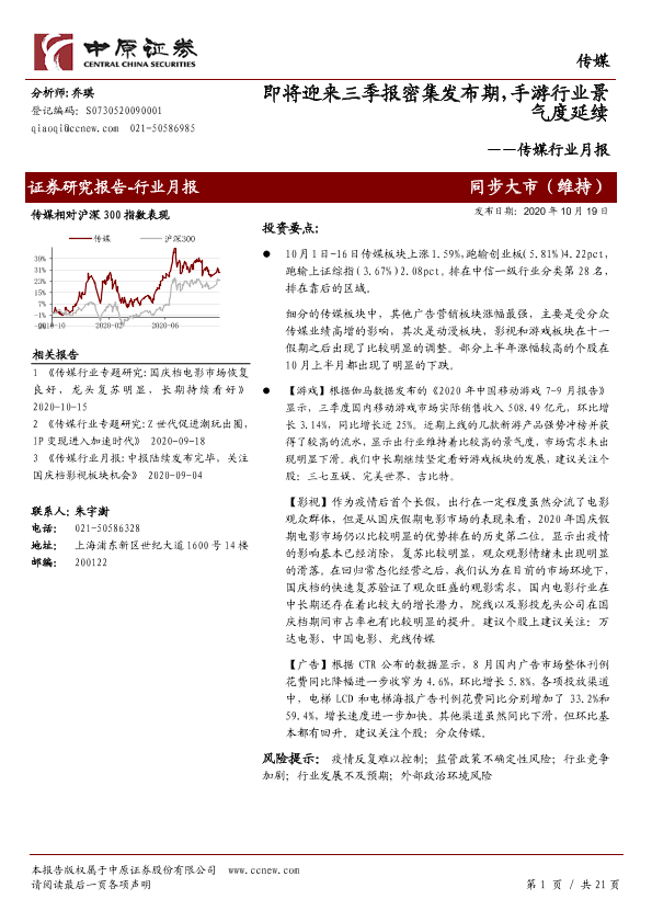 【中原证券】【20201019】即将迎来三季报密集发布期,手游行业景气度延续-21页