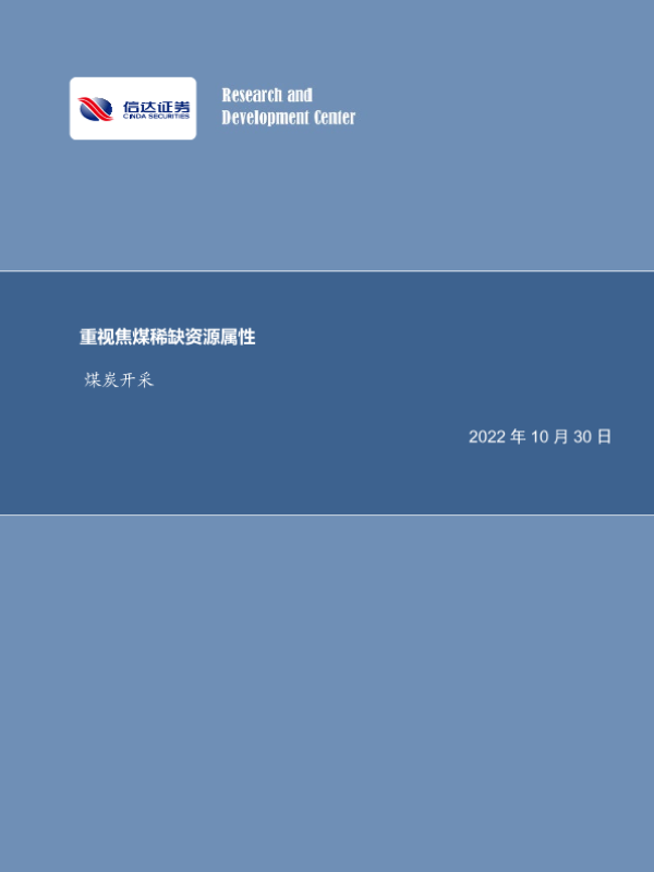 【信达证券】【20221030】煤炭开采行业周报:重视焦煤稀缺资源属性-27页