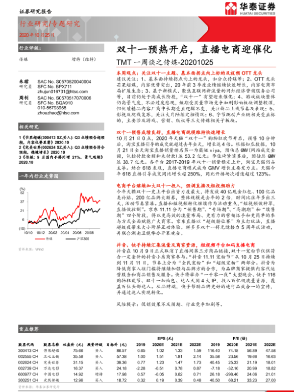 【华泰证券】【20201025】TMT一周谈之传媒行业:双十一预热开启,直播电商迎催化-15页