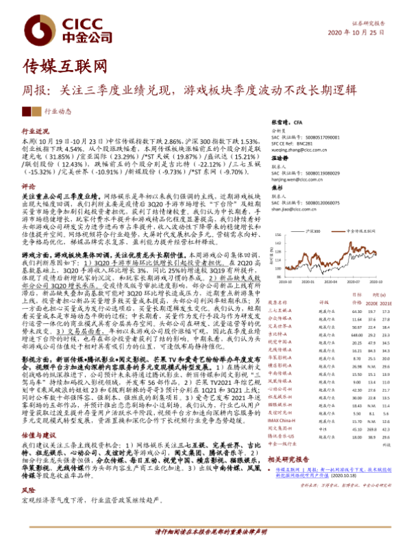 【中金公司】【20201025】传媒互联网行业周报:关注三季度业绩兑现,游戏板块季度波动不改长期逻辑-20页