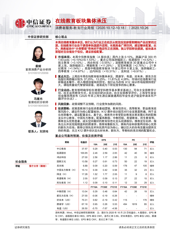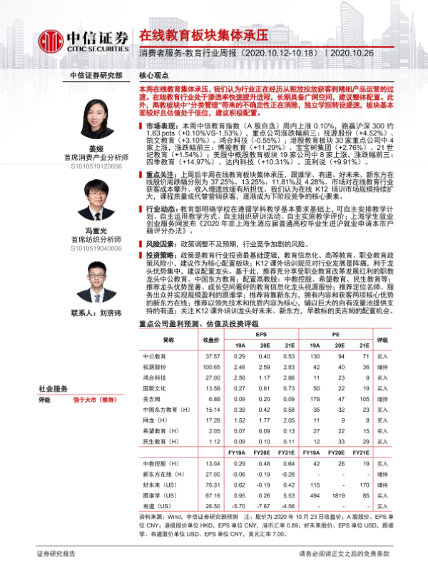 【中信证券】【20201026】20201026-中信证券-消费者服务-教育行业周报:在线教育板块集体承压-11页
