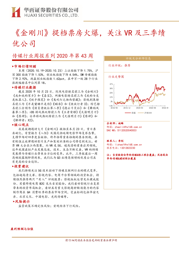 【华西证券】【20201026】20201026-华西证券-传媒行业周报系列2020年第43周:《金刚川》提档票房火爆,关注VR及三季绩优公司-17页
