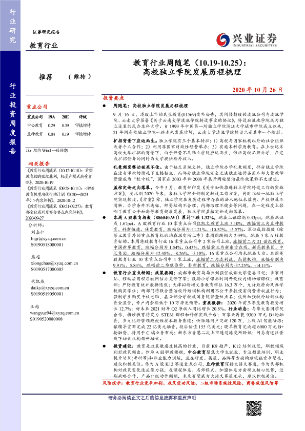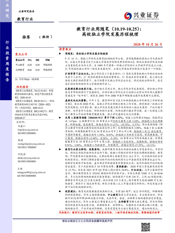 【兴业证券】【20201026】教育行业周随笔:高校独立学院发展历程梳理-18页