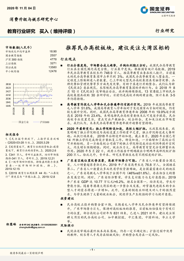 【国金证券】【20201104】20201104-国金证券-教育行业研究:推荐民办高校板块,建议关注大湾区标的-6页