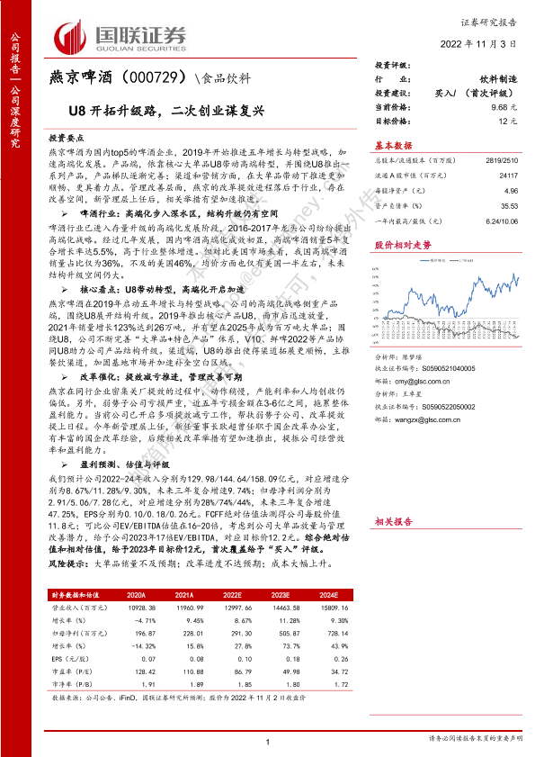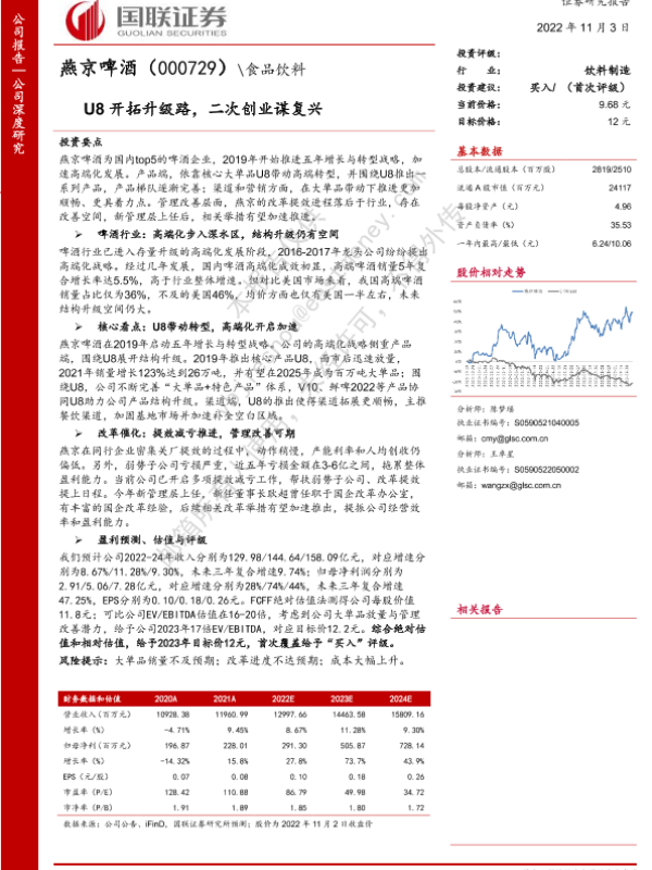 【国联证券】【20221103】燕京啤酒(000729)U8开拓升级路,二次创业谋复兴-28页