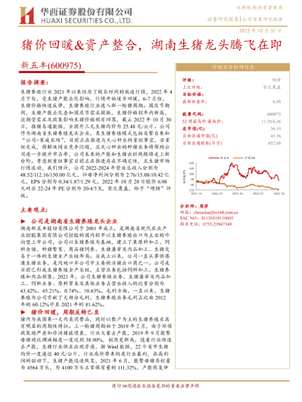 【华西证券】【20221031】猪价回暖&资产整合,湖南生猪龙头腾飞在即-26页