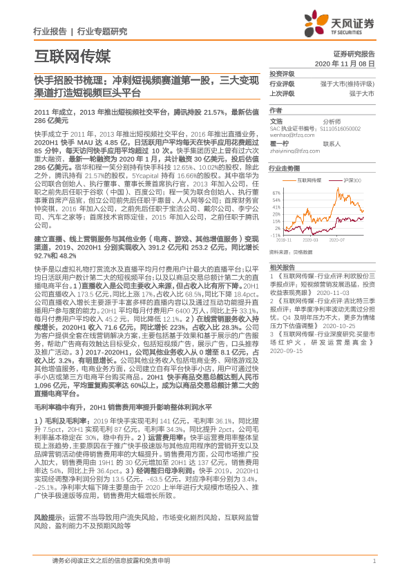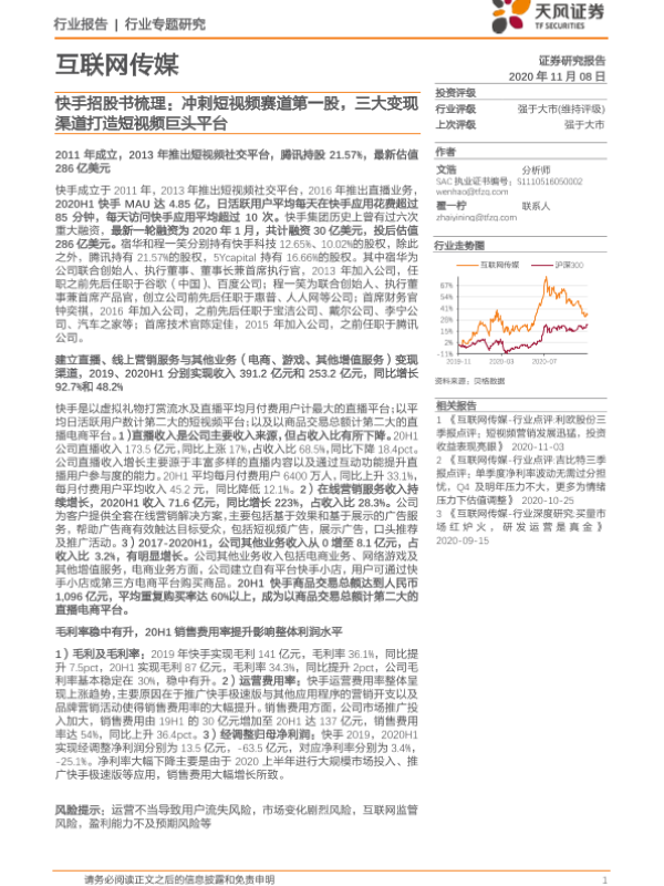 【天风证券】【20201108】快手招股书梳理:冲刺短视频赛道第一股,三大变现渠道打造短视频巨头平台-20页
