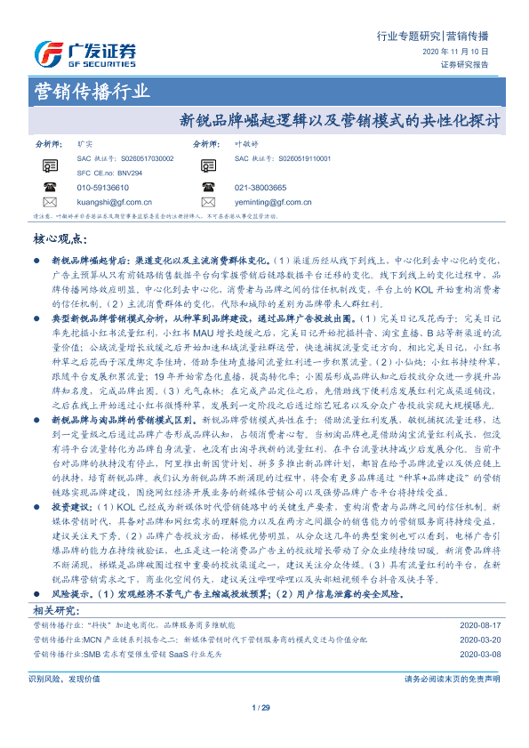 【广发证券】【20201110】营销传播行业:新锐品牌崛起逻辑以及营销模式的共性化探讨-29页