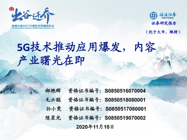 【海通证券】【20201110】传媒行业:5G技术推动应用爆发,内容产业曙光在即-17页