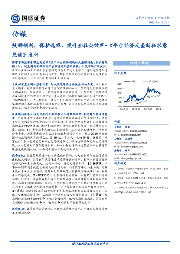 【国盛证券】【20201112】传媒行业:鼓励创新,保护选择,提升全社会效率-《平台经济反垄断征求意见稿》点评-8页