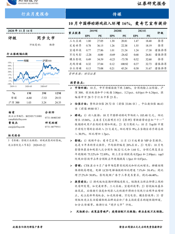 【财信证券】【20201114】10月中国移动游戏收入环增16%,爱奇艺宣布提价-11页
