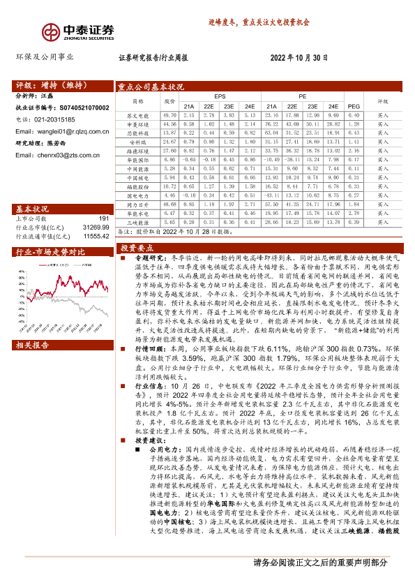 【中泰证券】【20221030】环保及公用事业行业周报:迎峰度冬,重点关注火电投资机会-22页