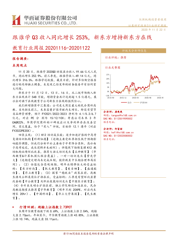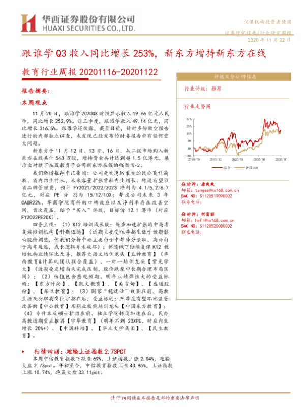 【华西证券】【20201123】20201123-华西证券-教育行业周报:跟谁学Q3收入同比增长253%,新东方增持新东方在线-17页