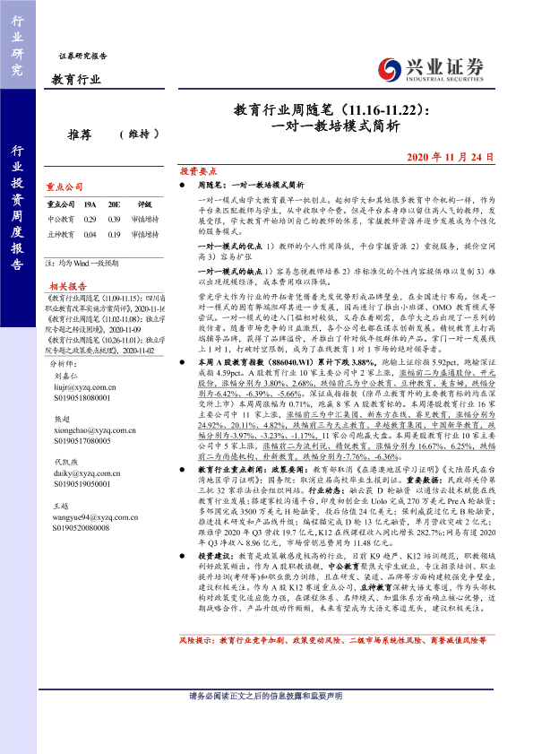 【兴业证券】【20201124】教育行业周随笔(11.16-11.22):一对一教培模式简析-16页
