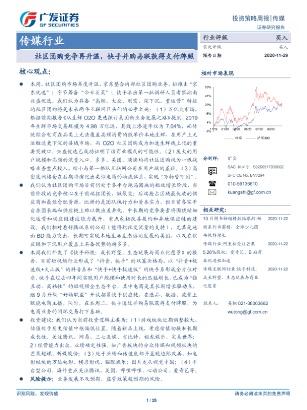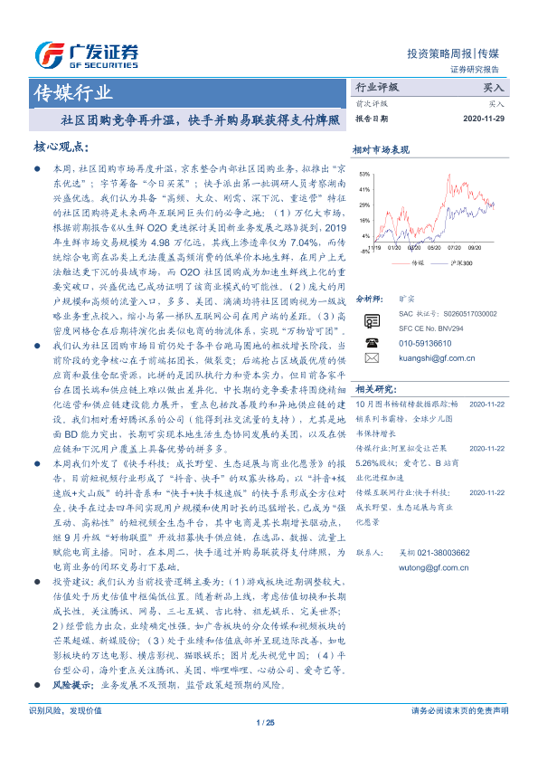 【广发证券】【20201129】20201129-广发证券-传媒行业投资策略周报:社区团购竞争再升温,快手并购易联获得支付牌照-25页