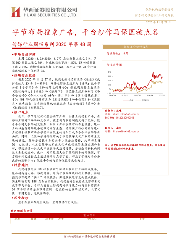 【华西证券】【20201129】20201129-华西证券-传媒行业周报系列2020年第48周:字节布局搜索广告,平台炒作马保国被点名-16页