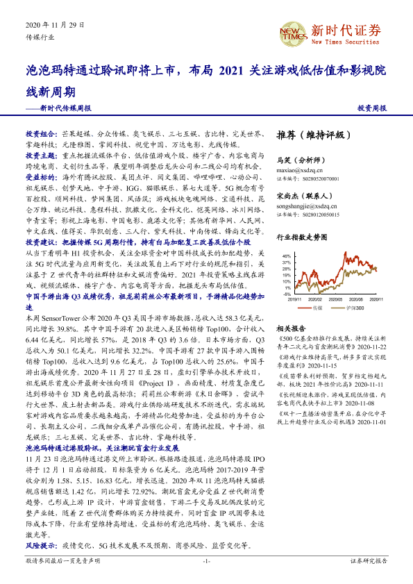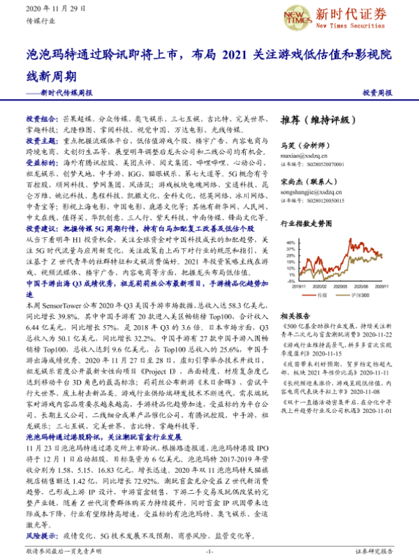 【新时代证券】【20201129】20201129-新时代证券-传媒周报:泡泡玛特通过聆讯即将上市,布局2021关注游戏低估值和影视院线新周期-34页