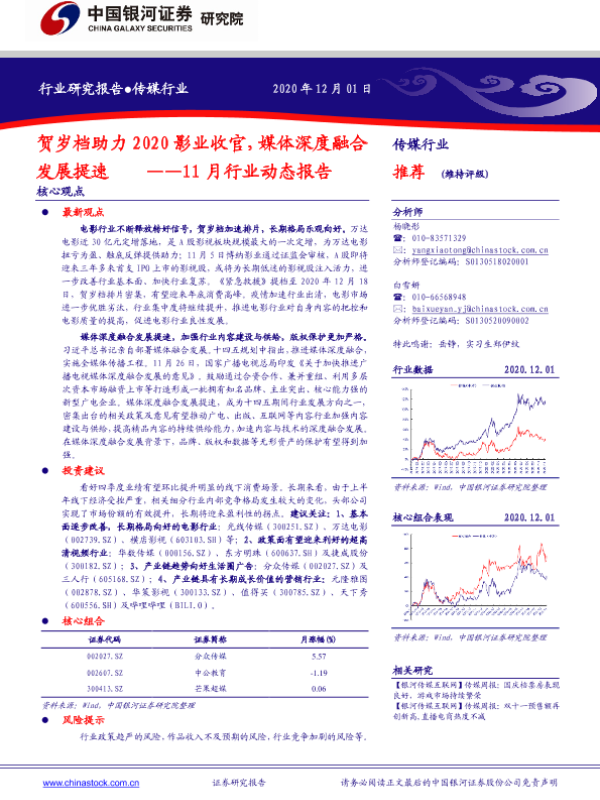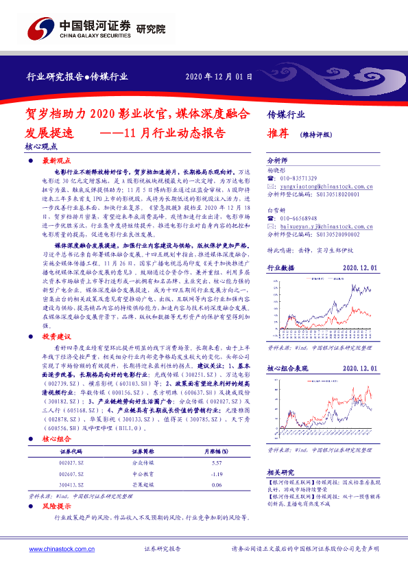 【银河证券】【20201201】贺岁档助力2020影业收官,媒体深度融合发展提速——11月行业动态报告-45页