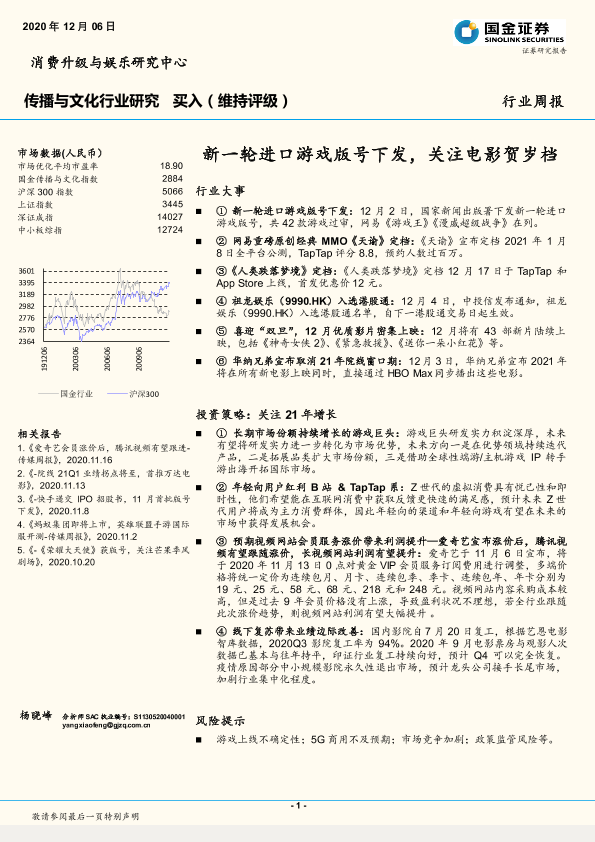 【国金证券】【20201206】20201206-国金证券-传播与文化行业研究周报:新一轮进口游戏版号下发,关注电影贺岁档-9页