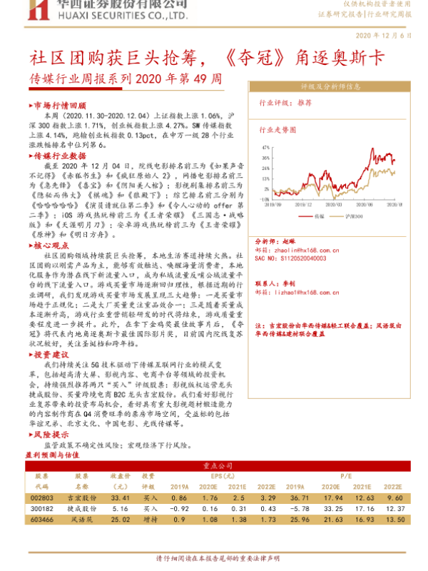 【华西证券】【20201206】20201206-华西证券-传媒行业周报系列2020年第49周:社区团购获巨头抢筹,《夺冠》角逐奥斯卡-15页