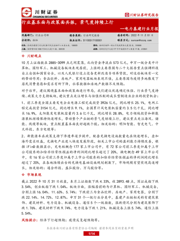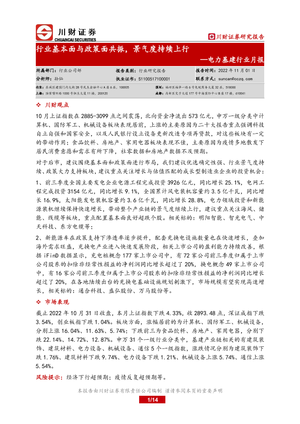 【川财证券】【20221101】电力基建行业月报:行业基本面与政策面共振,景气度持续上行-14页