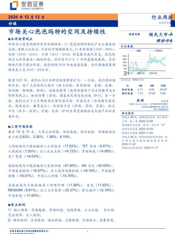 传媒行业 投资分析 泡泡玛特 潮玩市场 行业周报