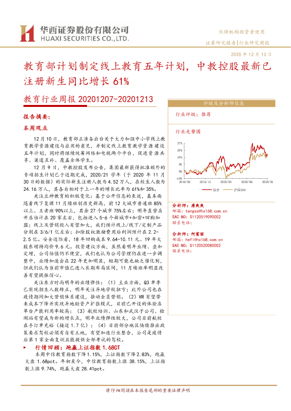 【华西证券】【20201213】20201213-华西证券-教育行业周报:教育部计划制定线上教育五年计划,中教控股最新已注册新生同比增长61%-17页
