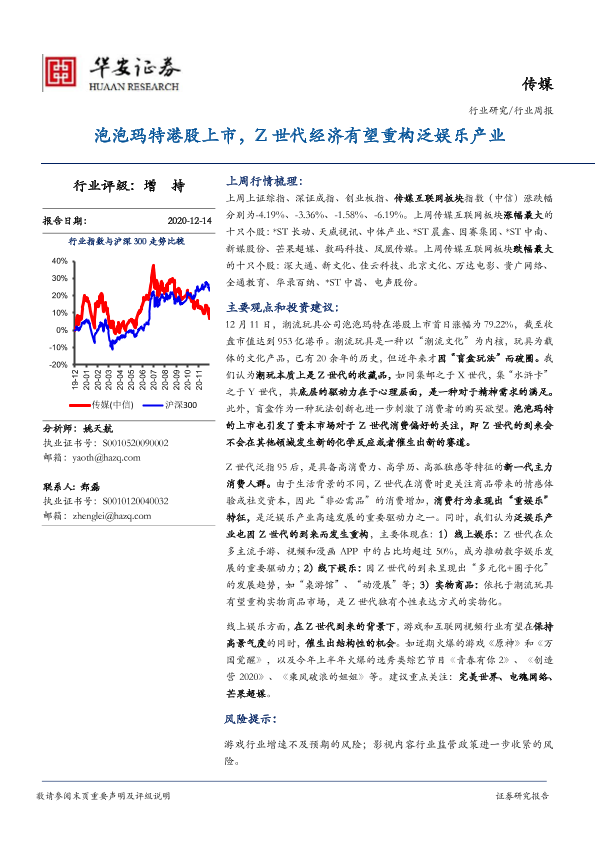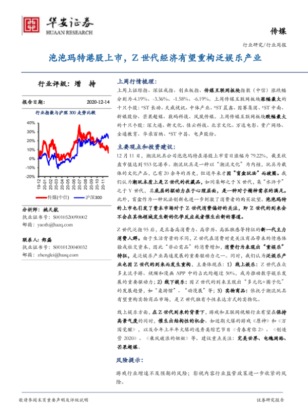 【华安证券】【20201214】20201214-华安证券-传媒行业周报:泡泡玛特港股上市,Z世代经济有望重构泛娱乐产业-18页