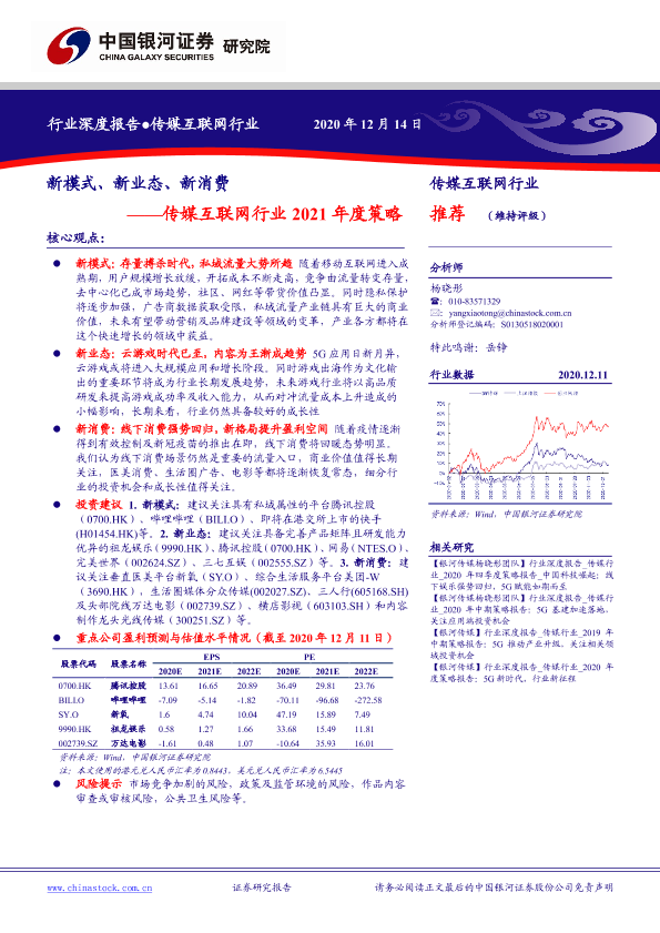 【银河证券】【20201214】20201214-中国银河-传媒互联网行业2021年度策略:新模式、新业态、新消费-51页