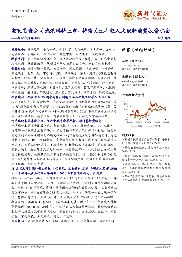 【新时代证券】【20201213】新时代传媒周报:潮玩盲盒公司泡泡玛特上市,持续关注年轻人文娱新消费投资机会-34页
