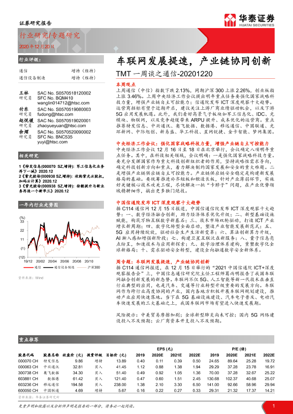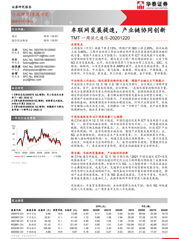 【华泰证券】【20201220】TMT一周谈之通信:车联网发展提速,产业链协同创新-20页