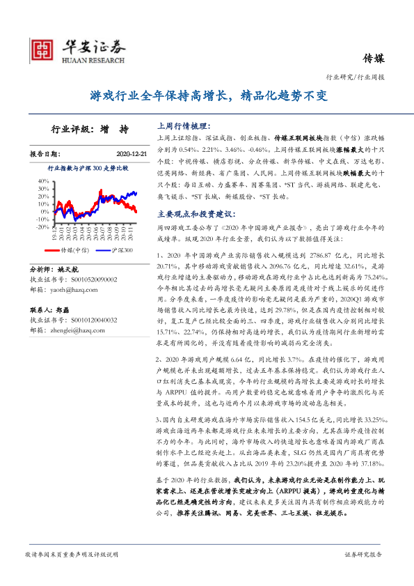 【华安证券】【20201221】20201221-华安证券-传媒行业周报:游戏行业全年保持高增长,精品化趋势不变-18页