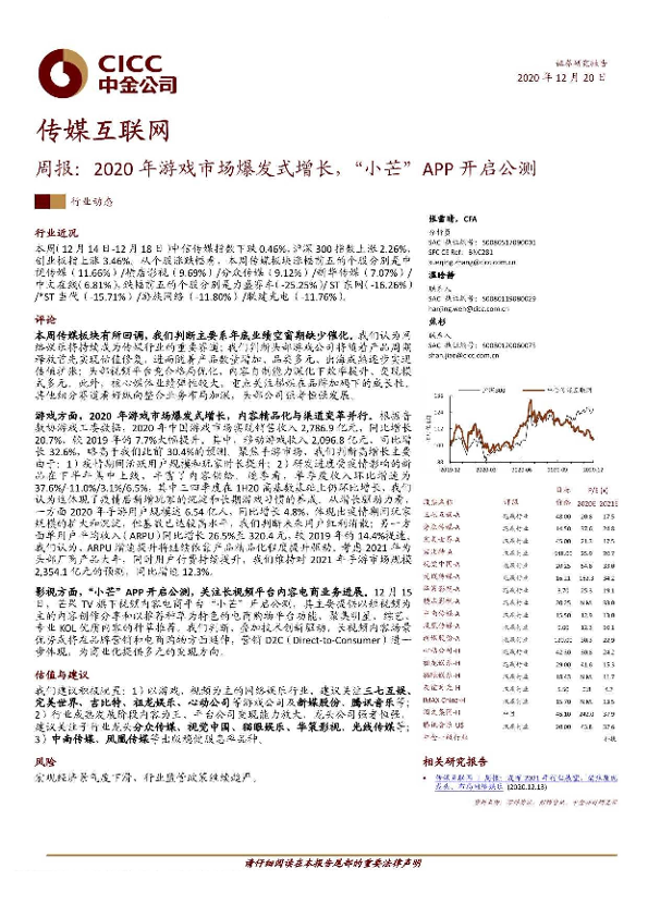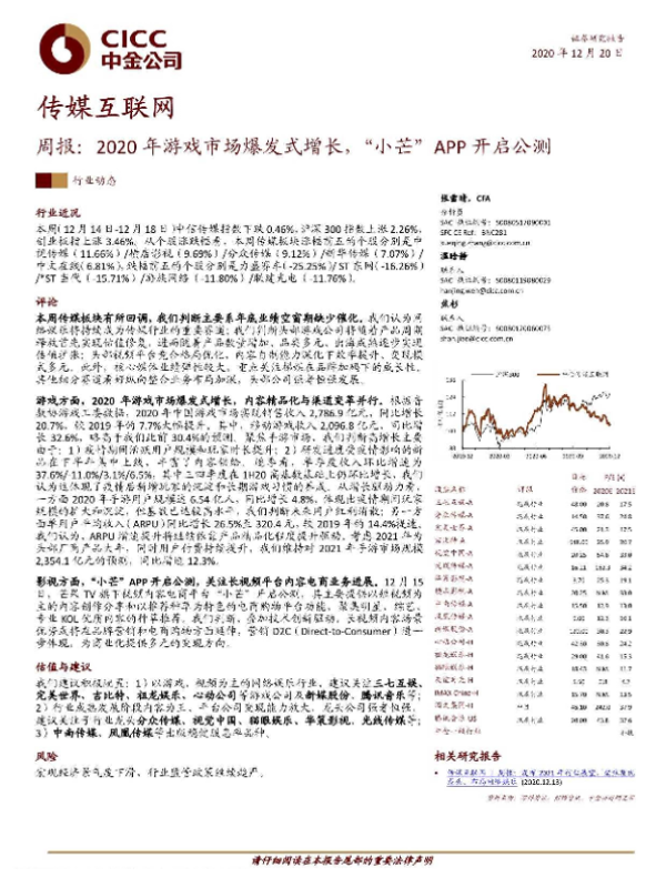 传媒互联网 小芒APP 游戏市场 网络娱乐 视频内容电商