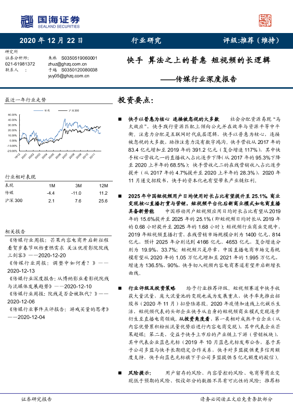 【国海证券】【20201222】20201222-国海证券-传媒行业深度报告:快手 算法之上的普惠 短视频的长逻辑-36页