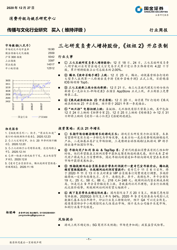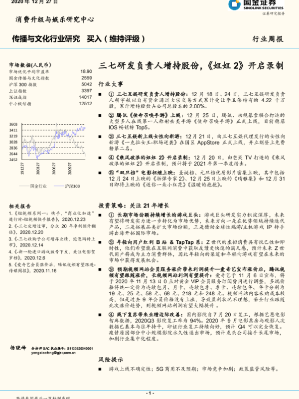 【国金证券】【20201227】传播与文化行业研究行业周报:三七研发负责人增持股份,《姐姐2》开启录制-11页