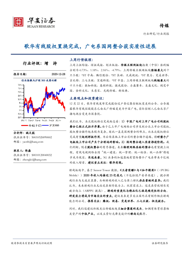 【华安证券】【20201228】20201228-华安证券-传媒行业周报:歌华有线股权置换完成,广电系国网整合获实质性进展-18页