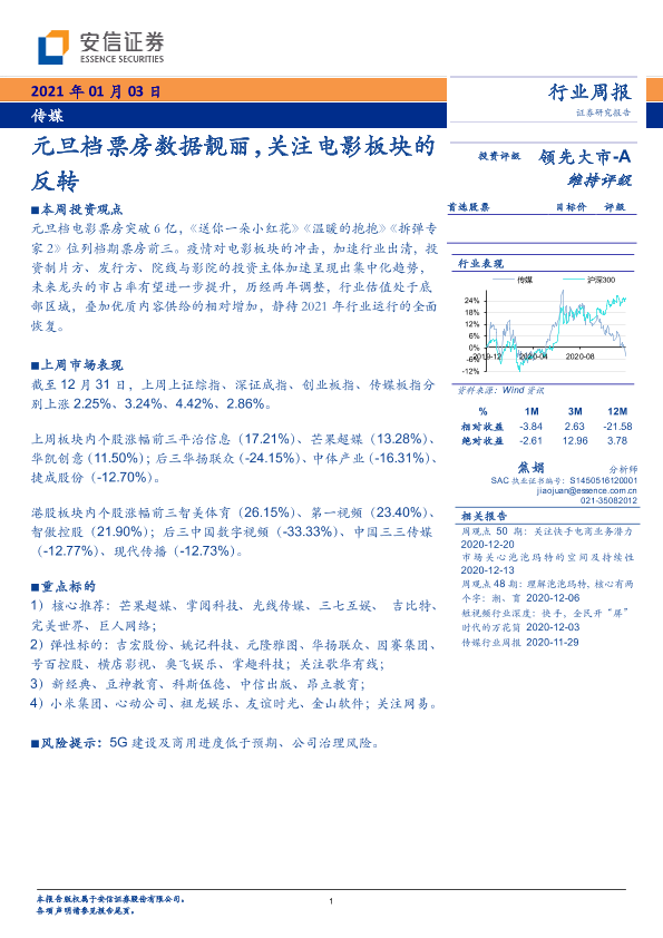 【安信证券】【20210103】20210103-安信证券-传媒行业周报:元旦档票房数据靓丽,关注电影板块的反转-14页
