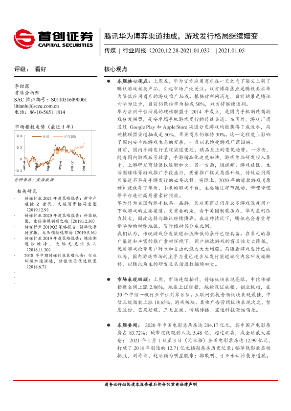 【首创证券】【20210105】20210105-首创证券-传媒行业周报:腾讯华为博弈渠道抽成,游戏发行格局继续嬗变-10页