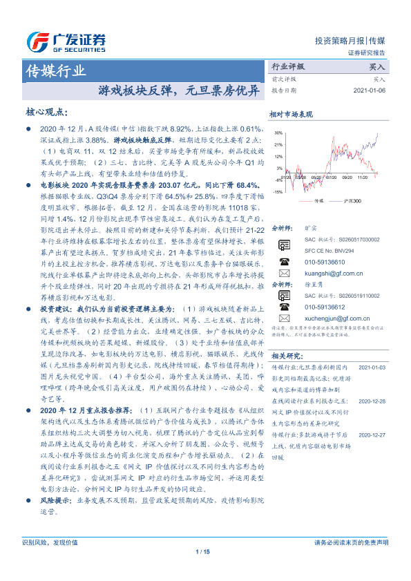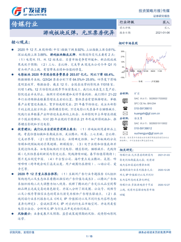 【广发证券】【20210106】20210106-广发证券-传媒行业投资策略月报:游戏板块反弹,元旦票房优异-15页